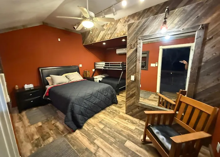 Der Transport zu Bunk House The Roost Cabins Lakehills gestaltet sich unkompliziert. Die Anbindung an die Hauptverkehrsstraßen ermöglicht eine bequeme Anreise mit dem Auto. Für die Gäste, die öffentliche Verkehrsmittel nutzen, gibt es in der Nähe geeignete Haltestellen, die eine problemlose Anreise sicherstellen.